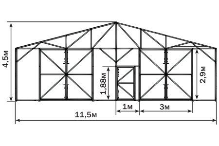 Промышленную теплицу «Фермер» можно оснастить системой отопления, а для покрытия использовать многокамерный сотовый поликарбонат, тогда теплицу можно использовать для круглогодичного выращивания урожая. Если дополнительно поставить тамбур и утеплить фундамент, то это позволит значительно снизить расходы на отопление.