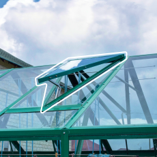 - Жалюзийные и откидные форточки в торец. Обеспечивают сквозное проветривание, растения получают достаточный приток воздуха и не перегреваются.
