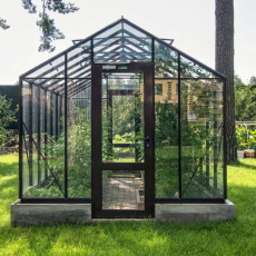 - Ширина 3,5 м и высота 2,4 м формируют просторный внутренний объём. Увеличенное воздушное пространство стабилизирует микроклимат, вам будет комфортно работать внутри в полный рост, а растения получат больше света и воздуха, при этом конструкция сохраняет гармоничные пропорции и чёткий силуэт.